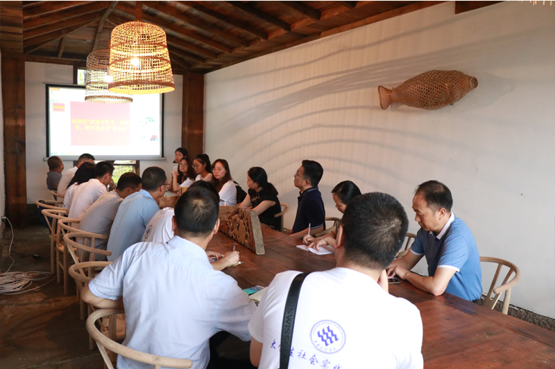 7月4日上午,实践团来到荣昌区清江镇,对mansion88明升与当地政府合作的人居环境改造项目进行实地调研。实践团通过摄影与写作记录当地特有的“鱼文化”风光,体验独具一格的乡村文化,拓宽对新农村建设的视野,丰富人文感知;实践团还参观了独具匠心的民宿,领略其中高工艺的木制结构设计,增长设计经验。在调研中,实践团队参与了由荣昌区领导主持召开的“丰收节”筹备会,进一步了解了乡村振兴的有效举措,领略到人与自然和谐共生的先进理念。