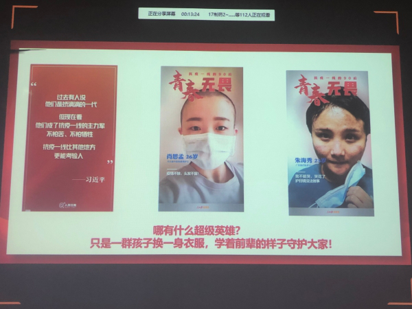 为深入学习习近平总书记关于疫情防控的重要讲话和指示精神,进一步挖掘战疫育人元素,充分运用好疫情防控这本思政教育“活教材”,做好学生思想政治教育工作,4月27日下午,我院学工办副主任王俊老师利用QQ群直播开展“把疫情当教材,与祖国共成长”大学生周末思想教育网络主题教育,2017级、2018级和2019级共200余名学生参与本次活动。